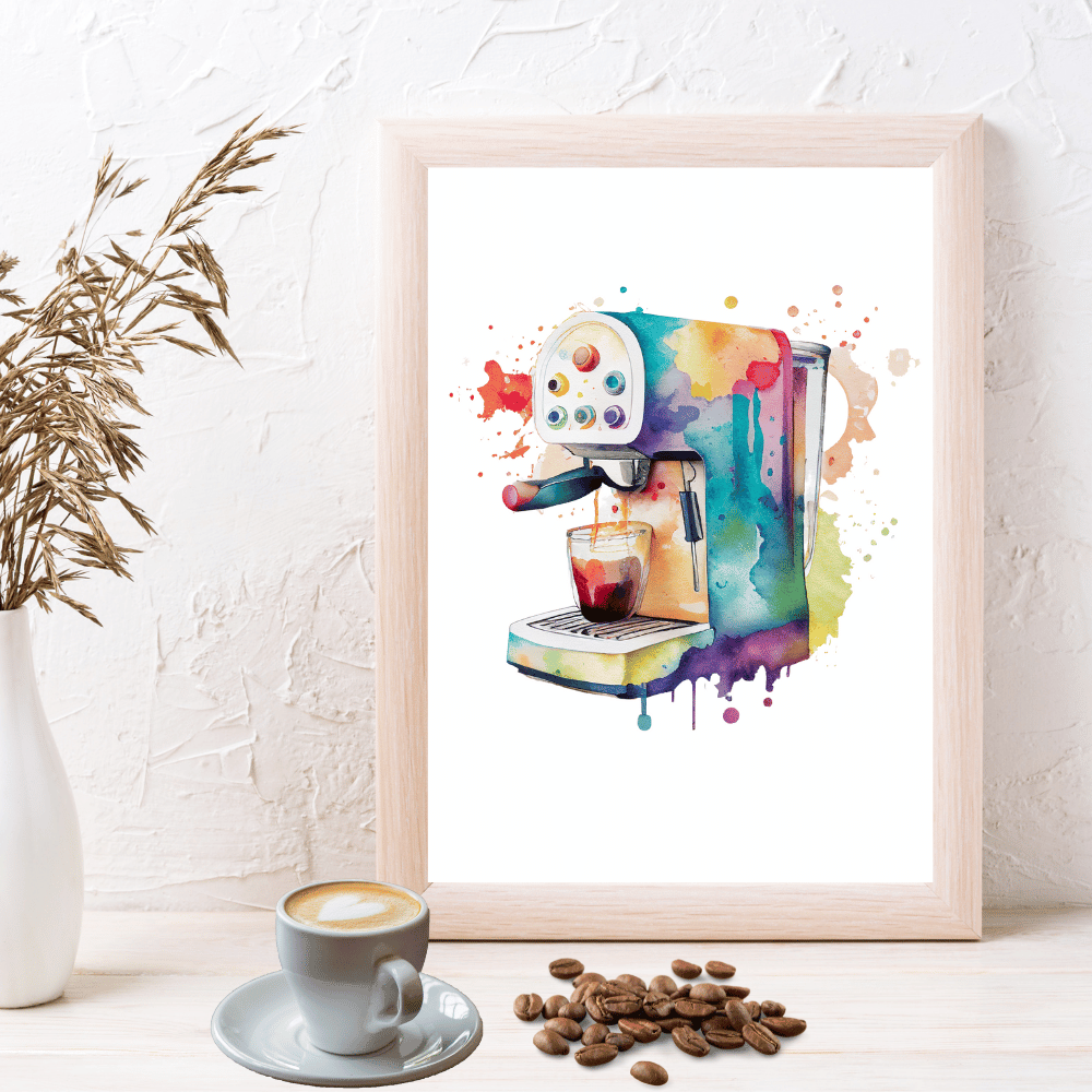 Ale to není všechno. Celý kávovar na plakátu je ve velmi pestrých barvách. To znamená, že tvůj kávovar nebude jen prostředek k přípravě kávy, ale také stylový doplněk pro tvůj domov. Představ si, jak bude tvůj kávovar vypadat v této barevné kráse! Tvé ráno bude plné radosti a optimismu, protože vstaneš do světa plného barev a kávy.