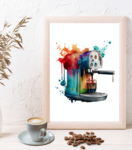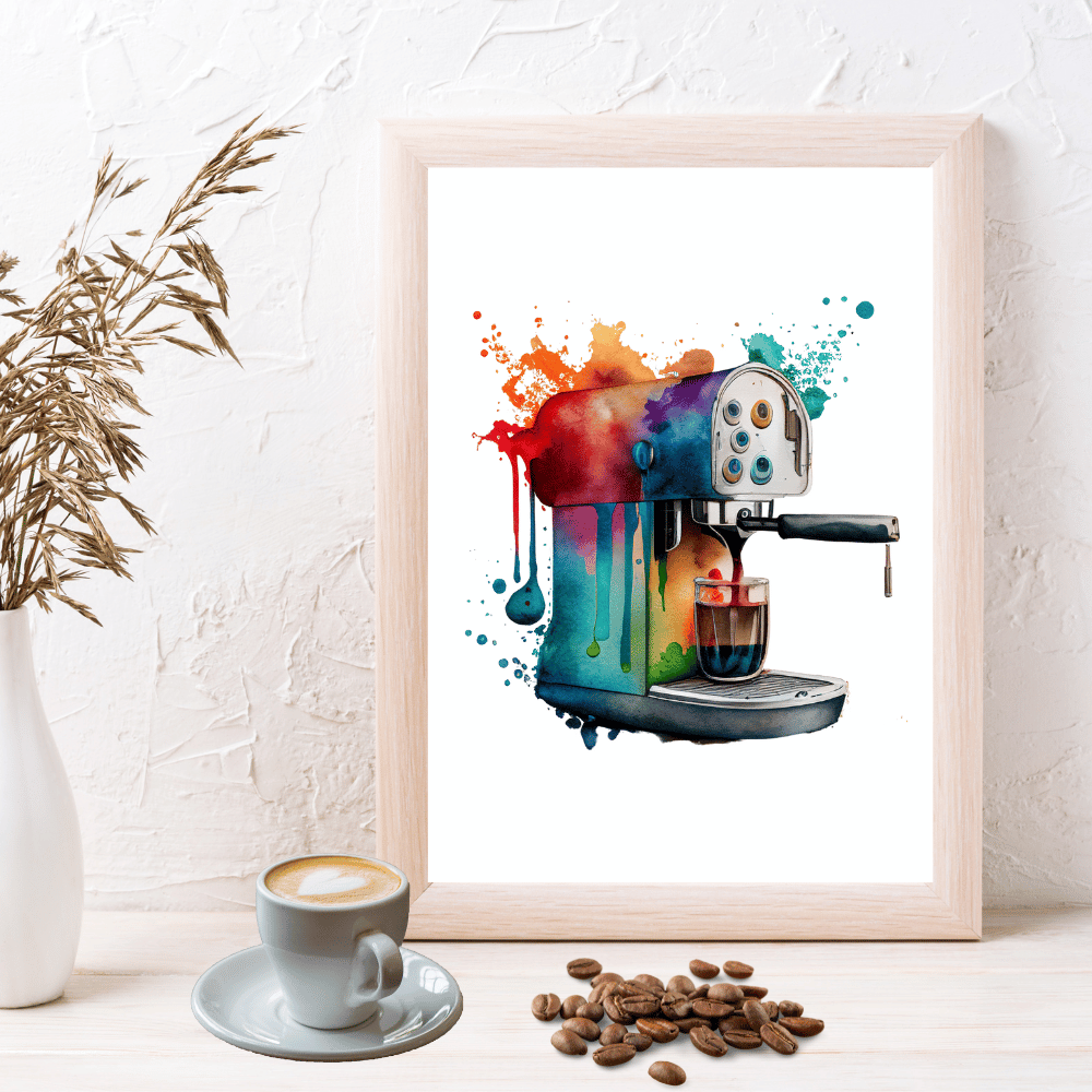 A tady je tajemství celého procesu – tato malba zachycuje celou tu kávovou magii! Na plakátu vidíš, jak se káva presuje do šálku, takže můžeš přesně vidět, jak si tvoje káva vychutnává svůj život v tvém šálku. Je to tak, jako bys byl uprostřed kávové plantáže a slyšel bys, jak se kávová zrna smaží.