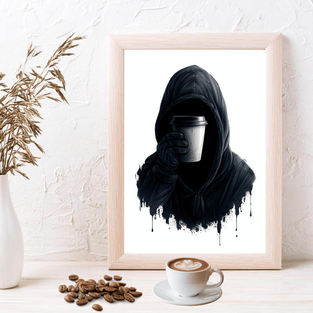 Ale jedna věc je jistá: tahle osoba má vkus v kávě. Drží totiž kelímek s kávou pevně v ruce, jako by to bylo jeho nejcennější zboží. Je to někdo, kdo ví, co je důležité v životě. Káva! A my se s ním můžeme identifikovat, protože kdo by nechtěl mít takového stylu jako on?
